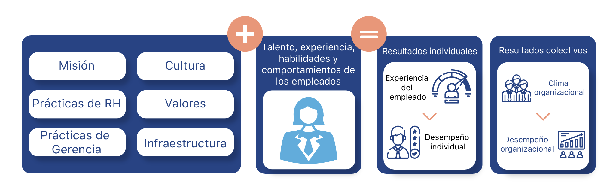 Todo lo que una organización ofrece a cambio del tiempo, conocimiento y esfuerzo de sus empleados. Incluye prácticas de recursos humanos, comportamientos de liderazgo, cultura organizacional e interacciones entre colegas. - Experiencia del Empleado (EX):